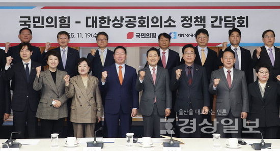 대한상공회의소는 19일 서울 중구 대한상의 챔버라운지에서 국민의힘과 경제 현안 정책 간담회를 열었다. 간담회에는 국민의힘 장동혁 대표와 송언석 원내대표, 김도읍 정책위의장, 윤한홍 정무위원장, 임이자 기재위원장 등이 참석했다. 경제계에서는 최태원 대한상의 회장, 박윤경 대구상의 회장, 박주봉 인천상의 회장, 이윤철 울산상의 회장, 배해동 경기도상의연합회 회장 등 대한상의 회장단과 주요기업 대표가 참석했다.