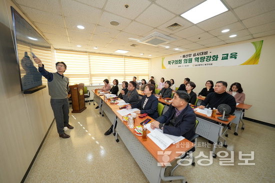 북구의회는 19일 의회 다목적실에서 의원 및 직원들의 참가 속에 나라살림연구소 이상민 수석연구위원을 강사로 초빙해 ‘예산안 심사 대비 의원 역량강화 교육’을 진행했다.