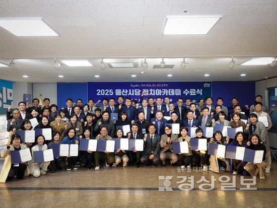 이어진 수료식에서 김태선 울산시당위원장은 “당원의 역량이 정당의 경쟁력이고, 그 경쟁력이 지방선거의 승부를 결정한다”며 “이번 정치아카데미가 당원과 지방선거 출마 예정자들의 경쟁력을 높이는 좋은 기회가 됐다. 당원 역량 강화를 지속해 내년 지방선거에서 반드시 승리하겠다”고 강조했다.