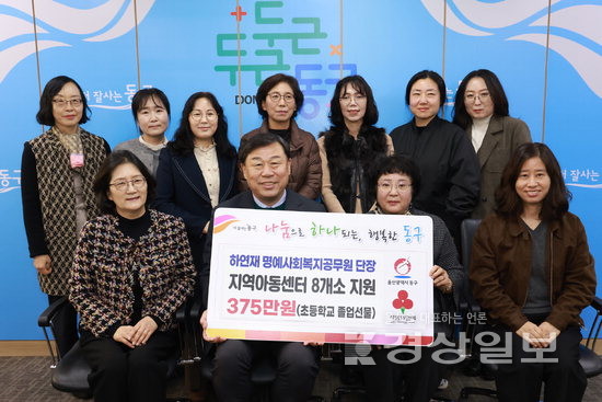 ▲ 하연재 울산명예사회복지공무원 동구 단장은 24일 동구청을 방문해 지역아동센터 초등학교 졸업 선물을 지원해 달라며 성금 375만원을 김종훈 동구청장에게 전달하고 있다.하연재 울산명예사회복지공무원 동구 단장은 24일 동구청을 방문해 지역아동센터 초등학교 졸업 선물을 지원해 달라며 성금 375만원을 김종훈 동구청장에게 전달하고 있다. 저작권자 © 울산일보 무단전재 및 재배포 금지 김은정 기자 다른기사 보기 페이스북 트위터 카카오스토리 URL복사 기사공유하기