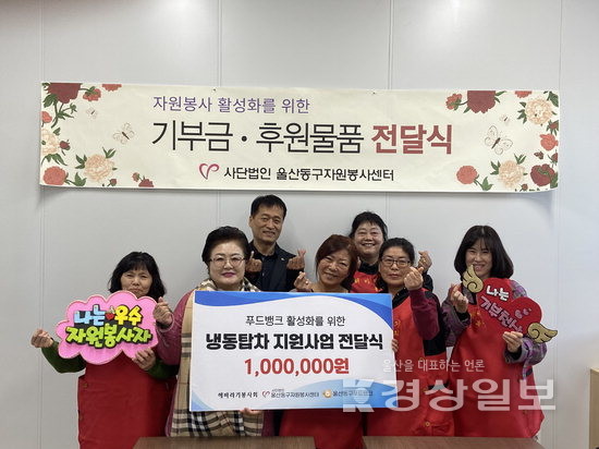 해바라기봉사회는 26일 울산동구자원봉사센터 소회의실에서 동구 지역 자원봉사 활성화를 위한 기부금 100만원을 전달했다. 기부금은 내달 교체할 냉동탑차 운영예산에 사용될 예정이다. 해바라기봉사회 관계자는 “지역사회에서 필요한 분야에 도움이 되고 싶어 후원을 결정했다”며 “서로 돕는 문화가 더욱 확산되길 바란다”고 말했다.