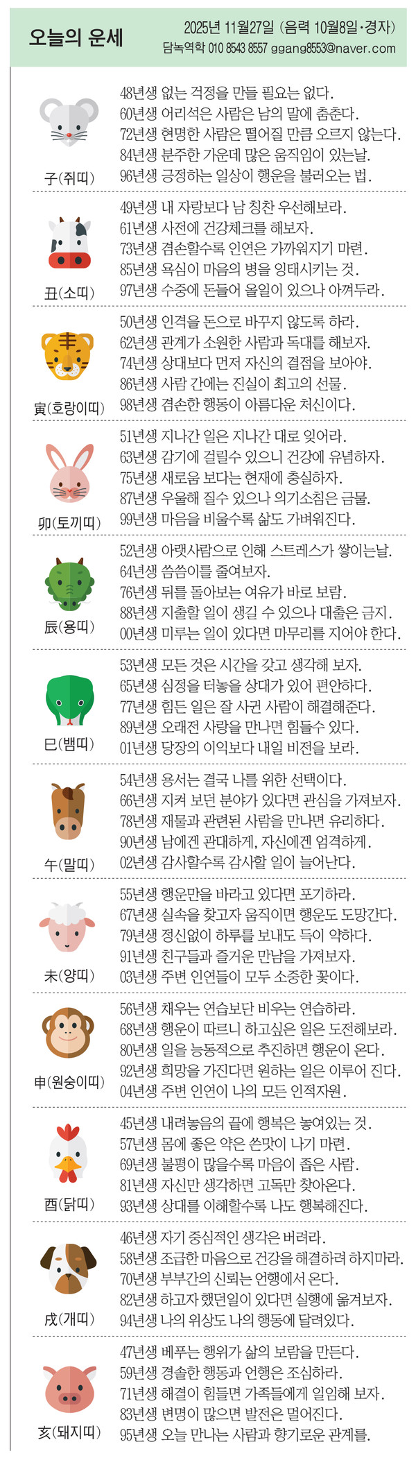 52년생 아랫사람으로 인해 스트레스가 쌓이는날.