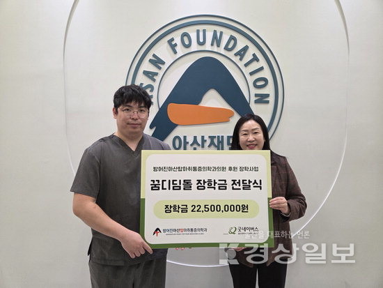 ▲ 방어진아산탑통증의학과의원(대표원장 김호창)이 2일 울산시가정위탁지원센터에 가정위탁아동의 대학진학 지원 등을 목적으로 꿈디딤돌 장학금 2250만원을 기탁했다.방어진아산탑통증의학과의원(대표원장 김호창)이 2일 울산시가정위탁지원센터에 가정위탁아동의 대학진학 지원 등을 목적으로 꿈디딤돌 장학금 2250만원을 기탁했다. 저작권자 © 울산일보 무단전재 및 재배포 금지 권지혜 기자 다른기사 보기 페이스북 트위터 카카오스토리 URL복사 기사공유하기