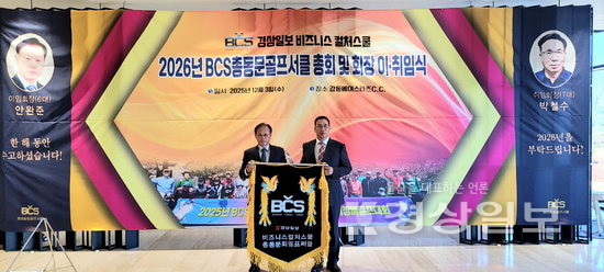 ▲ 2026년 BCS총동문골프서클 총회 및 회장 이·취임식이 지난 3일 울산 북구 강동베이스타즈CC에서 열렸다. 안완준(왼쪽) 이임회장이 박철수 취임회장에게 기를 전달하고 있다.2026년 BCS총동문골프서클 총회 및 회장 이·취임식이 지난 3일 울산 북구 강동베이스타즈CC에서 열렸다. 안완준(왼쪽) 이임회장이 박철수 취임회장에게 기를 전달하고 있다. 저작권자 © 울산일보 무단전재 및 재배포 금지 이춘봉 다른기사 보기 페이스북 트위터 카카오스토리 URL복사 기사공유하기