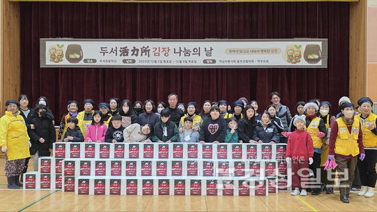 울산 두서초등학교(교장 정해철)는 지난 2일부터 4일까지 3일간 전교생이 참여하는 ‘김장 담그기 체험학습’을 운영했다. 이번 활동은 두서초등학교 텃밭 ‘활력소 농장’에서 마을교사와 함께 지난 9월부터 직접 재배한 배추 400포기를 활용해 수확·절임·김치 담그기·기부로 이어지는 전 과정 프로젝트형 ESD(지속가능발전교육) 프로그램으로 운영됐다.