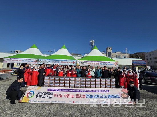 대우여객자동차(주)와 우리버스(주)는 시내버스 기사들이 직접 심고 키운 배추 5000포기, 무 5000개로 5㎏들이 3000통(9000만원 상당) 김치를 담그는 사랑의 김장나눔 온기나눔 행사를 4일 우리버스 북구 연암차고지에서 실시했다. 기사들은 지난 8월 회사 농장인 울산 중구 성안동 1004 일대에서 홀몸노인 및 소년소녀 가장 등에 나눠 줄 김장용 배추와 무를 심고 길렀다. 이날 담근 김치는 관내 복지시설과 교통사고 피해 가족, 한부모 가정, 소년·소녀 가장, 지역아동센터, 장애인보호시설 등에 전달됐다. 김은정기자 저작권자 © 울산일보 무단전재 및 재배포 금지 이춘봉 다른기사 보기 페이스북 트위터 카카오스토리 URL복사 기사공유하기
