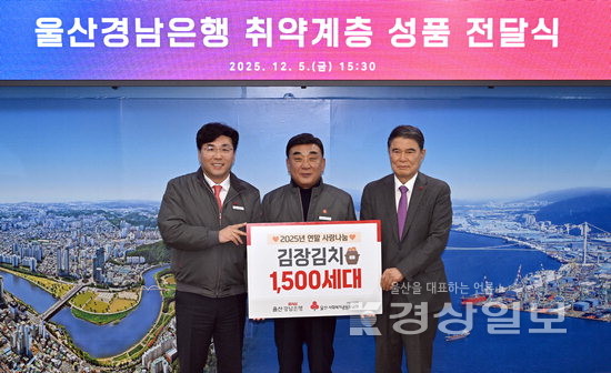 황재철 BNK경남은행 부행장은 “지역사회에 따뜻함을 전하기 위해 ‘2025 연말 사랑나눔 사업’을 추진 중이다. 사랑의 김장이 어려운 분들에게 작은 도움이 됐으면 한다”며 “앞으로도 BNK경남은행은 금융 지원뿐만 아니라 울산 시민과 취약계층의 삶에 힘이 되는 사회공헌사업을 지속적으로 펼쳐 나가겠다”고 말했다. 서정혜기자 sjh3783@ksilbo.co.kr