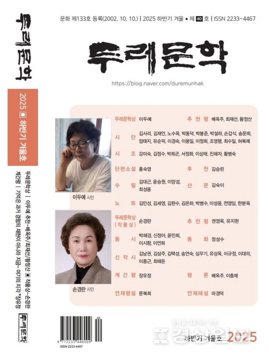 두레문학상은 이두예 시인이 수상했다. 이 시인은 부산시인협회 우수상(2018) 등을 수상했다. 그의 시 ‘우리의 농도’ 외 4편을 만날 수 있다.