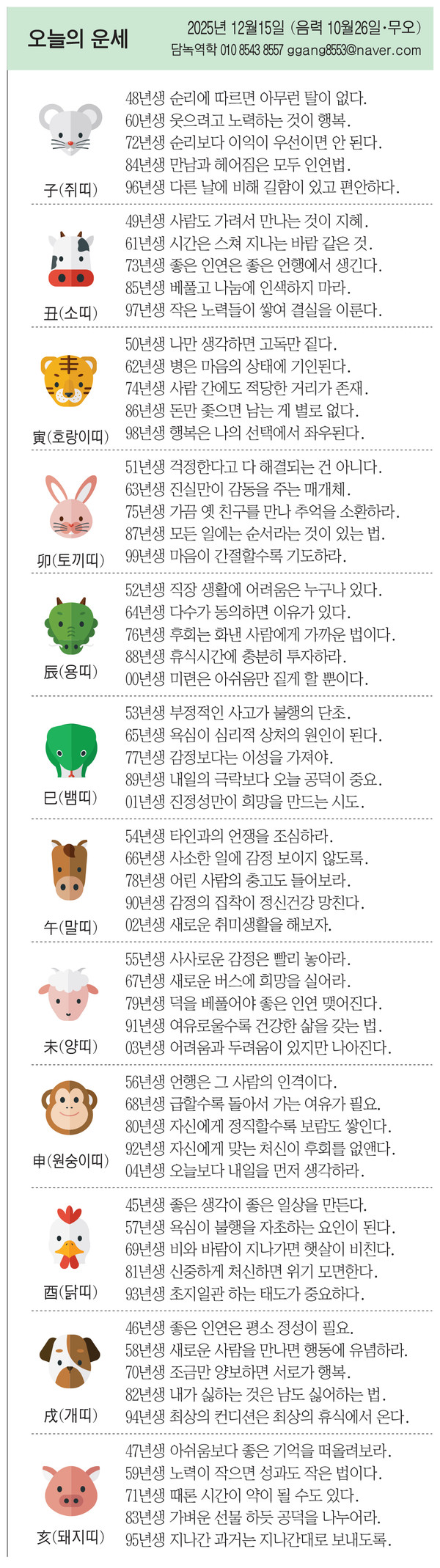 54년생 타인과의 언쟁을 조심하라.