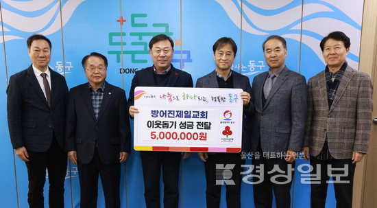 ▲ 울산 동구 방어진제일교회는 15일 동구청을 방문해 어려운 이웃을 위해 써달라며 성금 500만원을 김종훈 동구청장에게 전달했다.울산 동구 방어진제일교회는 15일 동구청을 방문해 어려운 이웃을 위해 써달라며 성금 500만원을 김종훈 동구청장에게 전달했다. 저작권자 © 울산일보 무단전재 및 재배포 금지 김은정 기자 다른기사 보기 페이스북 트위터 카카오스토리 URL복사 기사공유하기