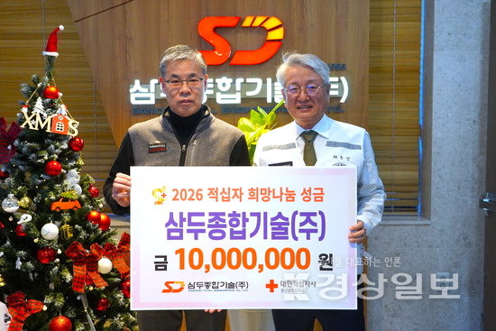 ▲ 최영수 삼두종합기술 대표는 15일 대한적십자사 울산시지사에 적십자 2026년 희망나눔 성금 1000만원을 후원했다.최영수 삼두종합기술 대표는 15일 대한적십자사 울산시지사에 적십자 2026년 희망나눔 성금 1000만원을 후원했다. 저작권자 © 울산일보 무단전재 및 재배포 금지 권지혜 기자 다른기사 보기 페이스북 트위터 카카오스토리 URL복사 기사공유하기