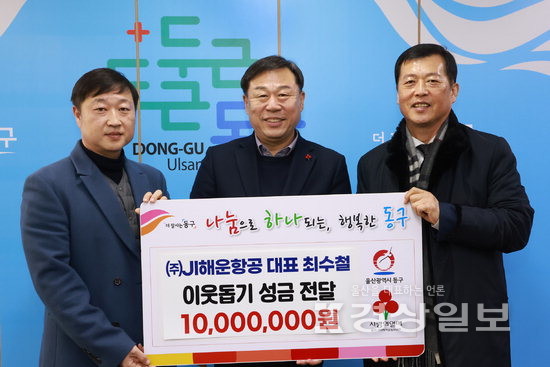 ▲ JI해운항공은 15일 울산 동구청을 방문해 방어동 관내 저소득층을 위해 써달라며 성금 1000만원을 김종훈 동구청장에게 전달했다.JI해운항공은 15일 울산 동구청을 방문해 방어동 관내 저소득층을 위해 써달라며 성금 1000만원을 김종훈 동구청장에게 전달했다. 저작권자 © 울산일보 무단전재 및 재배포 금지 김은정 기자 다른기사 보기 페이스북 트위터 카카오스토리 URL복사 기사공유하기