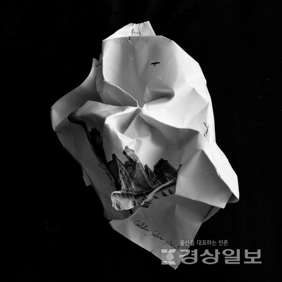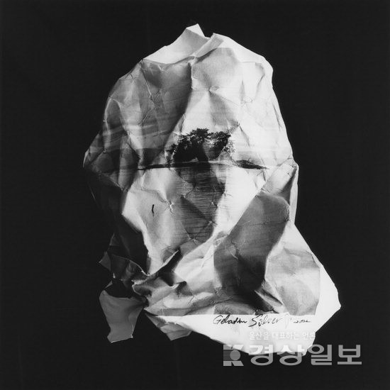 허석도 작가의 ‘구겨진 풍경’은 1차 촬영한 풍경의 흑백사진을 구기면서 예기치 못한 형태의 입체적으로 변한 풍경사진이다. 다시 촬영한 사진과 초기 평면의 사진을 동시에 나란히 전시함으로써 새로운 형식미로 생경함을 전한다. 이른바 전통적 풍경사진과 구겨짐의 사진은 작가의 공간적 이동이 개입된 사진이다.