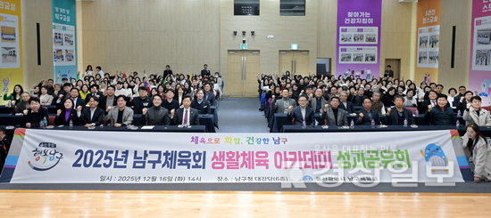 울산 남구체육회(회장 안춘태)는 16일 남구청 대강당에서 체육회 임원, 이사, 수강생 등이 참석한 가운데 2025년 생활체육 아카데미 성과공유회를 열고 시상식, 우수사례 발표, 프로그램발표회, 특별강연을 가졌다. 김경우기자