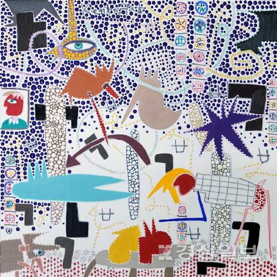 김경한은 일상을 주의 깊게 관찰하며 마주한 예상치 못한 대상과 장면을 그린다. 그의 화면에 자주 등장하는 ‘몸으로 그린 표현’은 물감과 캔버스, 작가가 하나가 되어 만들어낸 불규칙하고 혼돈스러운 살아 있는 형체들이다.