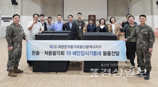 울산처용팔각회는 19해안감시기동대를 방문해 장병들의 노고를 격려하고 강당 및 체력단련실에 설치할 탄성 고무매트 180장을 전달했다.