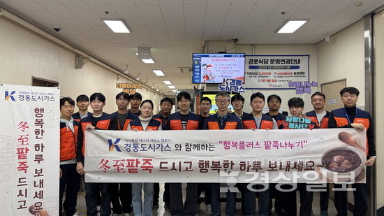 ▲ 경동도시가스(대표 나윤호)는 지난 19일 동지를 앞두고 ‘동지 행복 플러스 팥죽 나눔’ 행사를 진행했다. 임직원들은 북구노인복지관 어르신행복식당에서 직접 팥죽을 쒀 현장을 찾은 400여명에게 제공했고, 거동 불편 100가구에는 도시락 형태로 전달했다.경동도시가스(대표 나윤호)는 지난 19일 동지를 앞두고 ‘동지 행복 플러스 팥죽 나눔’ 행사를 진행했다. 임직원들은 북구노인복지관 어르신행복식당에서 직접 팥죽을 쒀 현장을 찾은 400여명에게 제공했고, 거동 불편 100가구에는 도시락 형태로 전달했다.