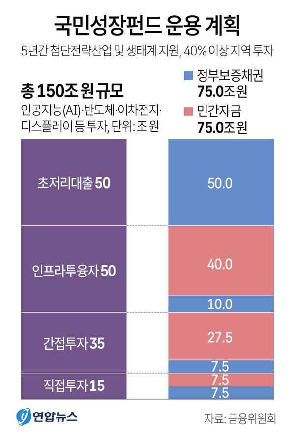 국민성장펀드는 향후 5년간 매년 30조원씩 벤처·첨단산업에 투입하고, 자금의 40% 이상을 지방에 배분하는 방향으로 운용된다. 최종 투자 결정은 투자심의위원회와 기금운용심의회가 맡는 ‘이중 거버넌스’ 체계로 이뤄지는데, 금융위는 내년 상반기 일반 국민이 직접 참여하는 ‘국민참여형 펀드’ 추진도 예고했다.