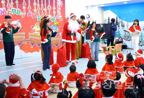 이날 산타 복장을 하고 어린이집에 깜짝 등장한 이상균 부회장은 아이 한명 한명과 눈을 맞추며 곰돌이 모양 발라클라바, 보드게임 등 준비한 선물을 아이들에게 직접 건넸다.