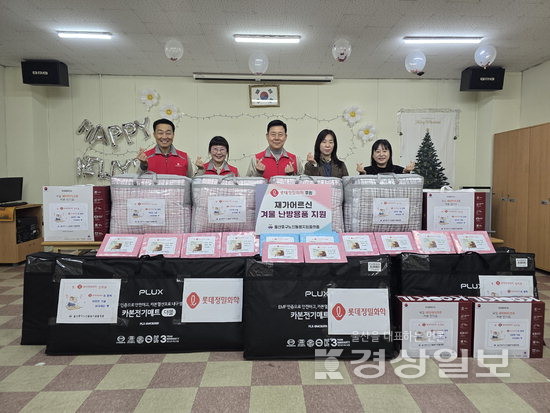 ▲ 롯데정밀화학은 23일 울산 중구노인돌봄지원플랫폼을 이용하는 저소득 재가 노인가구에 겨울내의, 전기매트 등 방한 용품을 지원하고 기념촬영을 하고 있다. 롯데정밀화학 제공롯데정밀화학은 23일 울산 중구노인돌봄지원플랫폼을 이용하는 저소득 재가 노인가구에 겨울내의, 전기매트 등 방한 용품을 지원하고 기념촬영을 하고 있다. 롯데정밀화학 제공 저작권자 © 울산일보 무단전재 및 재배포 금지 김은정 기자 다른기사 보기 페이스북 트위터 카카오스토리 URL복사 기사공유하기