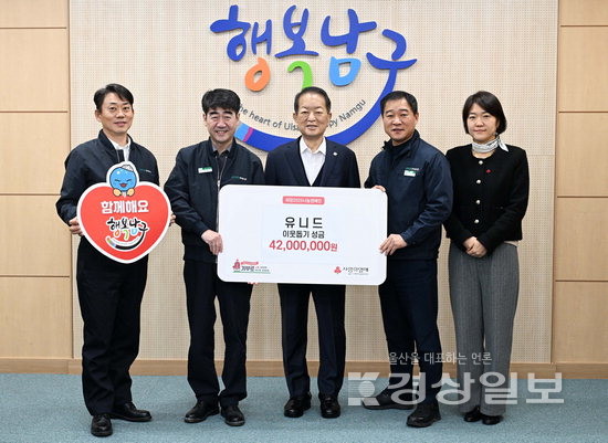 (주)유니드(대표이사 이우일)는 23일 울산 남구청을 방문해 후원금 3200만원과 1000만원 상당 백미 170포 등 4200만원 상당의 이웃돕기 성금을 울산사회복지공동모금회에 지정기탁 했다. 기초 무기 화학제품을 만드는 업체인 (주)유니드는 지난 2018년부터 올해까지 8년째 매년 남구에 어려운 이웃을 위해 이웃돕기를 하며 기업의 사회적 책임 실천에 앞장서고 있다. 이번 성금은 (주)유니드 울산공장 직원들이 지역사회에 실질적인 도움이 되고자 하는 의지를 가지고 1년간 월급의 일부를 자발적으로 기부해 모은 금액으로, 남구 저소득 가구에 전달될 예정이다. 권지혜기자 저작권자 © 울산일보 무단전재 및 재배포 금지 권지혜 기자 다른기사 보기 페이스북 트위터 카카오스토리 URL복사 기사공유하기