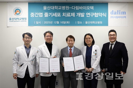 울산대학교병원(병원장 박종하)은 최근 (주)다림바이오텍(대표 정종섭)과 중간엽 줄기세포를 활용한 세포치료제 공동 연구·개발을 위한 업무협약을 체결하고 개발에 본격 나섰다고 23일 밝혔다.