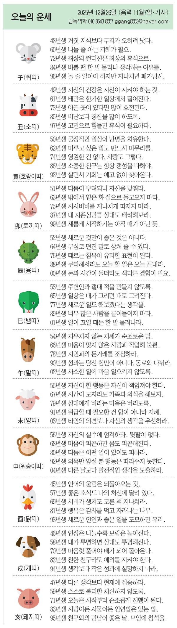 60년생 나눌 줄 아는 지혜가 필요.