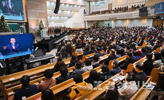 북구 대영교회도 지난 21일 교회 대성전에서 성탄 축하 찬양 예배를 마련한 데 이어 이날 같은 장소에서 성탄 축하 예배를 올렸다. 교회 대성전에서는 예배당 가득 신도들이 가득 찬 가운데 찬송가를 부르며 예수 탄생의 의미를 되새겼다.
