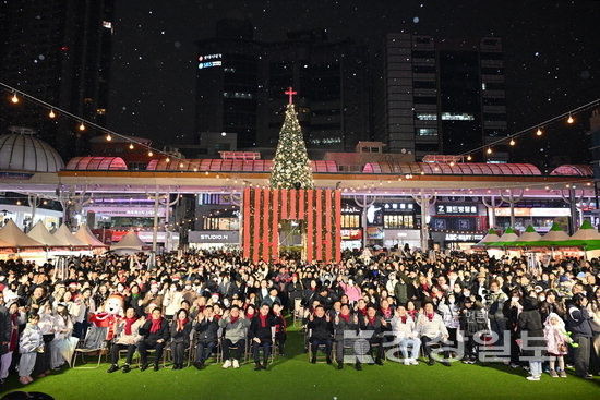 행사장 일원에는 12m 크기의 초대형 크리스마스 트리와 차량 포토존이 설치돼 시민들의 시선을 끌었다. 종 모양·‘2026’ 숫자 조형물 등 다양한 장식과 조명들이 더해지며 밤이 깊어질수록 원도심은 더욱 낭만적인 분위기를 자아냈다.