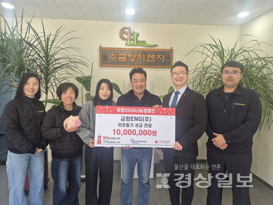 금항이엔지는 지난 23일 울산 사회복지공동모금회의 희망2026나눔캠페인 성금 1000만원을 기탁했다고 28일 밝혔다. 류재윤 대표는 “지역사회와 함께 성장해온 기업으로서 어려운 이웃에게 힘이 되고자 이번 나눔에 참여하게 됐다”며 “앞으로도 지속적인 사회공헌활동을 통해 지역에 보탬이 되는 기업이 되겠다”고 밝혔다. 김은정기자 k2129173@ksilbo.co.kr 저작권자 © 울산일보 무단전재 및 재배포 금지 김은정 기자 다른기사 보기 페이스북 트위터 카카오스토리 URL복사 기사공유하기