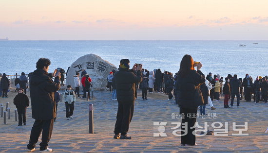 2025년의 마지막 휴일인 28일 울산 울주군 간절곶을 찾은 관광객들이 해맞이를 하고 있다. 내년 1월1일 한반도 육지에서 가장 먼저 새해 일출을 볼 수 있는 간절곶에서는 해맞이 행사가 열린다. 김동수기자 dskim@ksilbo.co.kr