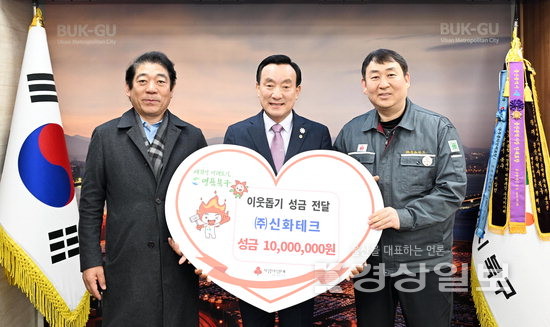 ▲ 신화테크는 29일 울산 북구청 구청장실에서 북구지역 저소득 가구 지원을 위한 성금 1000만원을 박천동 북구청장에게 전달했다.신화테크는 29일 울산 북구청 구청장실에서 북구지역 저소득 가구 지원을 위한 성금 1000만원을 박천동 북구청장에게 전달했다. 저작권자 © 울산일보 무단전재 및 재배포 금지 김은정 기자 다른기사 보기 페이스북 트위터 카카오스토리 URL복사 기사공유하기