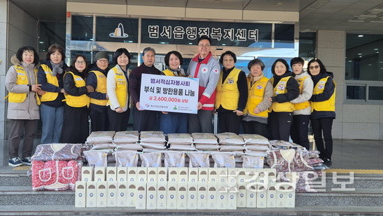▲ 울산 울주군 범서읍 적십자봉사회(회장 이선희)가 30일 지역 취약계층을 위해 260만원 상당의 백미와 방한의류 등을 범서읍 행정복지센터에 기탁했다.울산 울주군 범서읍 적십자봉사회(회장 이선희)가 30일 지역 취약계층을 위해 260만원 상당의 백미와 방한의류 등을 범서읍 행정복지센터에 기탁했다. 저작권자 © 울산일보 무단전재 및 재배포 금지 신동섭 기자 다른기사 보기 페이스북 트위터 카카오스토리 URL복사 기사공유하기