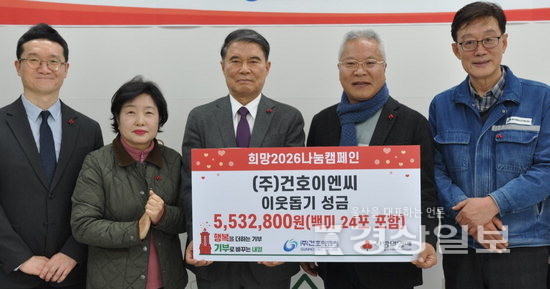 (주)건호이엔씨(대표 정성호)는 30일 울산사회복지공동모금회(회장 전영도)의 희망2026나눔캠페인에 동참하며 현금 500만원, 백미 24포 등 총 553만2800원 상당의 성금 및 현물을 기부했다. 전달된 백미와 성금은 울산 저소득 가정 및 사회복지시설 지원에 사용될 예정이다.