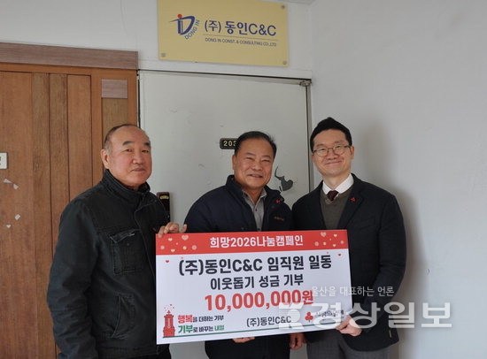 ▲ (주)동인C&C(대표이사 류재선)는 지난달 31일 지역 나눔실천을 위해 성금 1000만원을 울산사회복지공동모금회(회장 전영도)에 전달했다. 이번 기부는 동인C&C가 참여한 첫 공식 기부로, 사회적 책임을 실천하고 지역과 상생하기 위한 의미 있는 출발점이 됐다.(주)동인C&C(대표이사 류재선)는 지난달 31일 지역 나눔실천을 위해 성금 1000만원을 울산사회복지공동모금회(회장 전영도)에 전달했다. 이번 기부는 동인C&C가 참여한 첫 공식 기부로, 사회적 책임을 실천하고 지역과 상생하기 위한 의미 있는 출발점이 됐다.