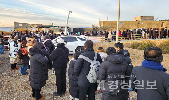 1일 새벽 동구 대왕암 해맞이축제 현장은 오전 5시 이전부터 시민과 관광객이 몰리며 주차장이 일찌감치 만석이 됐다. 행사가 열리는 대왕암공원뿐 아니라 바닷가를 배경으로 일출을 보려는 시민들이 일산해수욕장까지 발길을 옮겼다. 인근 숙소 객실 요금은 평소보다 배 이상 뛰었고, 이른 새벽임에도 일산해수욕장 사거리 일대에는 무리를 지어 이동하는 시민들이 많아 초저녁을 연상케 하는 분위기가 연출됐다. 대왕암공원 일대 카페와 편의점도 평소보다 일찍 문을 열고 따뜻한 커피와 어묵을 내놓으며 일출 인파를 맞았다. 사회문화부 종합