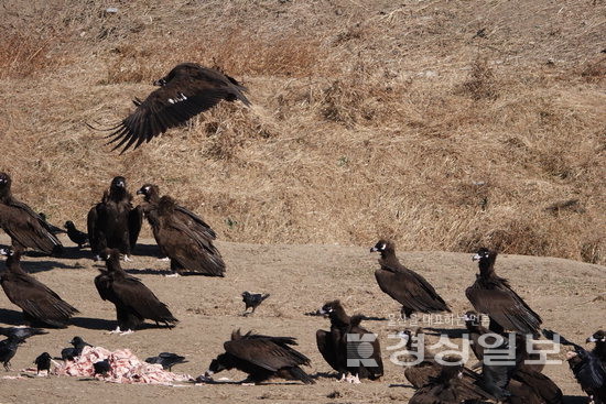 최근 120여 마리 이상으로 불어난 독수리들은 대부분 어린 독수리들로, 먹잇감이 부족해 탈진하거나 빨간 고무장갑, 밧줄, 스티로폼 등을 먹으며 폐사하는 경우가 많다.