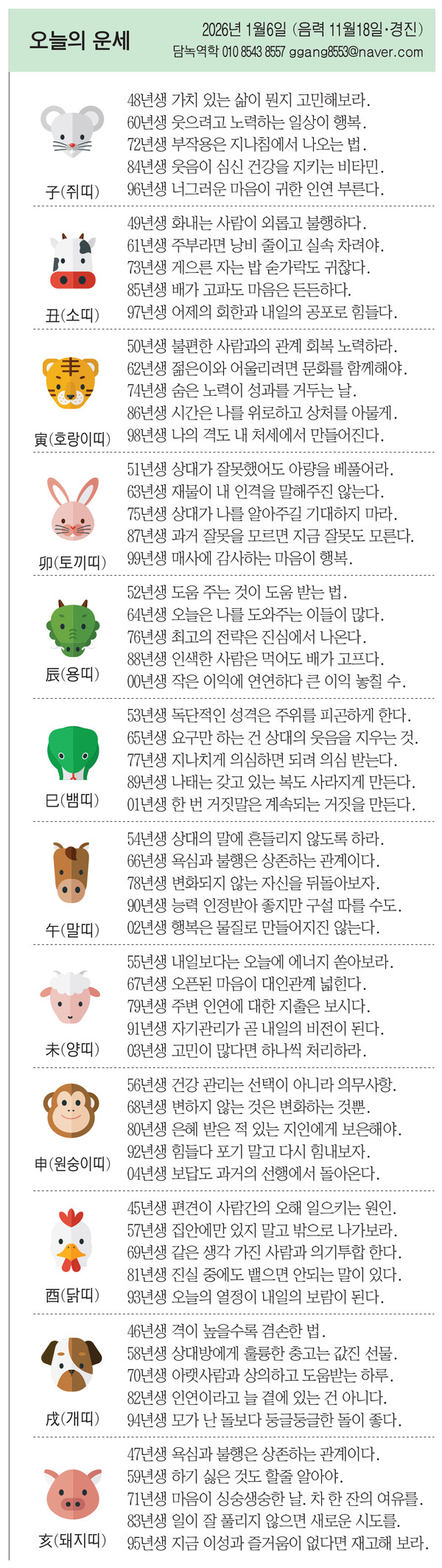 58년생 상대방에게 훌륭한 충고는 값진 선물.