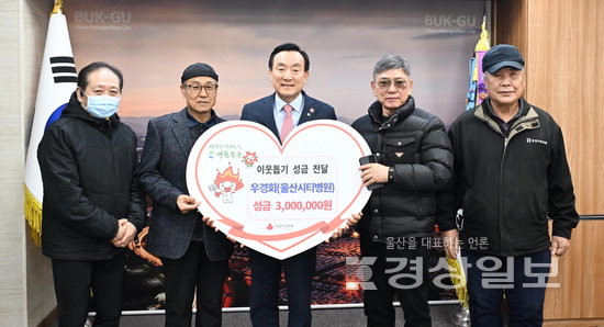 ▲ 울산시티병원 경비근로자로 구성된 ‘우경회’는 5일 북구청장실에서 지역 저소득가구 의료비 지원을 위한 성금 300만원을 박천동 구청장에게 전달했다.울산시티병원 경비근로자로 구성된 ‘우경회’는 5일 북구청장실에서 지역 저소득가구 의료비 지원을 위한 성금 300만원을 박천동 구청장에게 전달했다. 저작권자 © 울산일보 무단전재 및 재배포 금지 김은정 기자 다른기사 보기 페이스북 트위터 카카오스토리 URL복사 기사공유하기