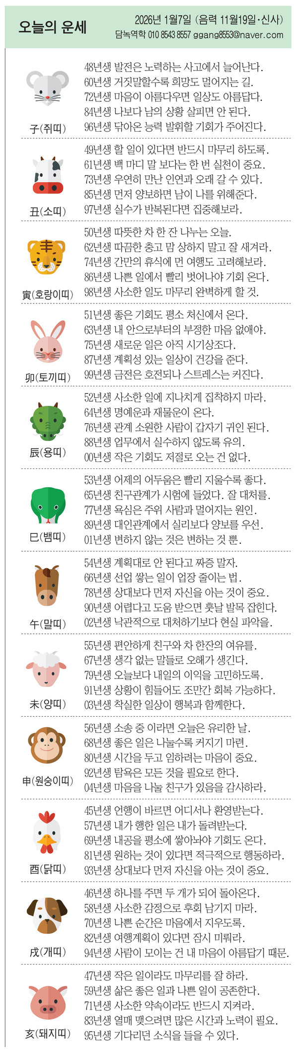71년생 사소한 약속이라도 반드시 지켜라.