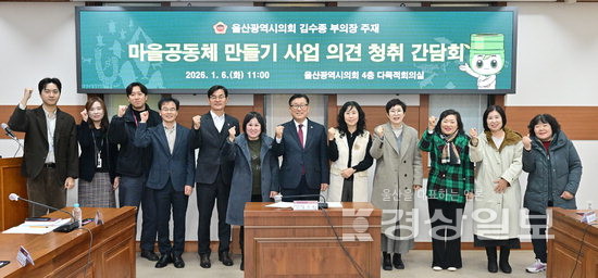 울산시의회 김수종 부의장은 6일 시의회 4층 다목적회의실에서 제8대 의회 마지막 비회기 일일 근무의 일환으로 마을공동체 만들기 사업과 관련한 의견 청취 간담회를 개최했다.