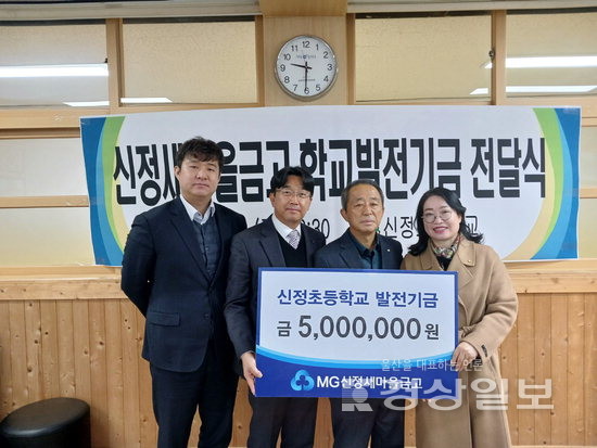 ▲ 울산 신정초등학교는 신정새마을금고로부터 학교발전기금 500만원을 전달받았다고 12일 밝혔다. 신정새마을금고는 신정초와 1사1교 상호 결연을 체결하고, 2012년부터 해마다 500만원을 기부하며 지역 인재 양성에 앞장서고 있다.울산 신정초등학교는 신정새마을금고로부터 학교발전기금 500만원을 전달받았다고 12일 밝혔다. 신정새마을금고는 신정초와 1사1교 상호 결연을 체결하고, 2012년부터 해마다 500만원을 기부하며 지역 인재 양성에 앞장서고 있다.