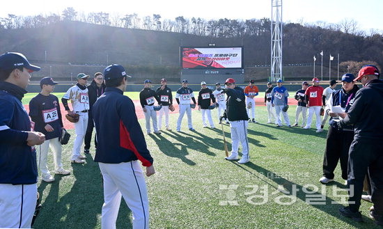 특히 2024시즌까지 일본프로야구(NPB) 1군에서 뛰었던 투수 고바야시 주이(25)와 오카다 아키타케(33)는 시속 150㎞에 가까운 빠른 공을 연달아 던지며 존재감을 드러냈다. 장원진 감독과 코치진도 이들의 투구 하나하나를 유심히 지켜봤다.