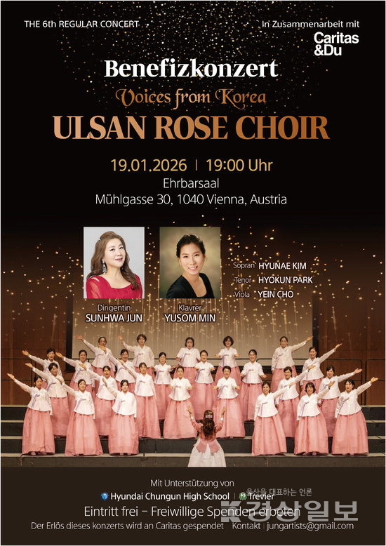 울산 현대청운고등학교 동문으로 구성된 로즈합창단은 오는 19일과 20일 오스트리나 비엔나와 린츠에서 자선음악회 ‘한국에서 온 목소리’를 개최한다고 14일 밝혔다.