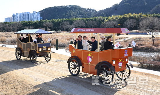 김두겸 시장과 초등학생, 정원해설사, 연인 커플 등은 이날 동승해 마차를 체험하며 불편사항 등을 점검했다.