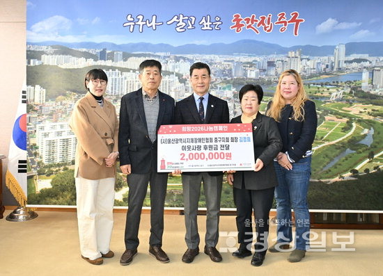 ▲ 김정희 (사)울산시지체장애인협회 중구지회장은 지난 16일 중구청 구청장실을 찾아 울산사회복지공동모금회를 통해 이웃돕기 후원금 200만원을 전달했다.김정희 (사)울산시지체장애인협회 중구지회장은 지난 16일 중구청 구청장실을 찾아 울산사회복지공동모금회를 통해 이웃돕기 후원금 200만원을 전달했다. 저작권자 © 울산일보 무단전재 및 재배포 금지 주하연 기자 다른기사 보기 페이스북 트위터 카카오스토리 URL복사 기사공유하기