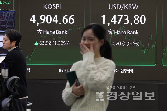 19일 한국거래소에 따르면 코스피 지수는 전 거래일보다 63.92p(1.32%) 오른 4904.66에 장을 마치며 종가 기준 사상 최고치를 또 경신했다. 꿈의 지수 코스피 5000p까지는 불과 95p가량만 남겨 뒀다.