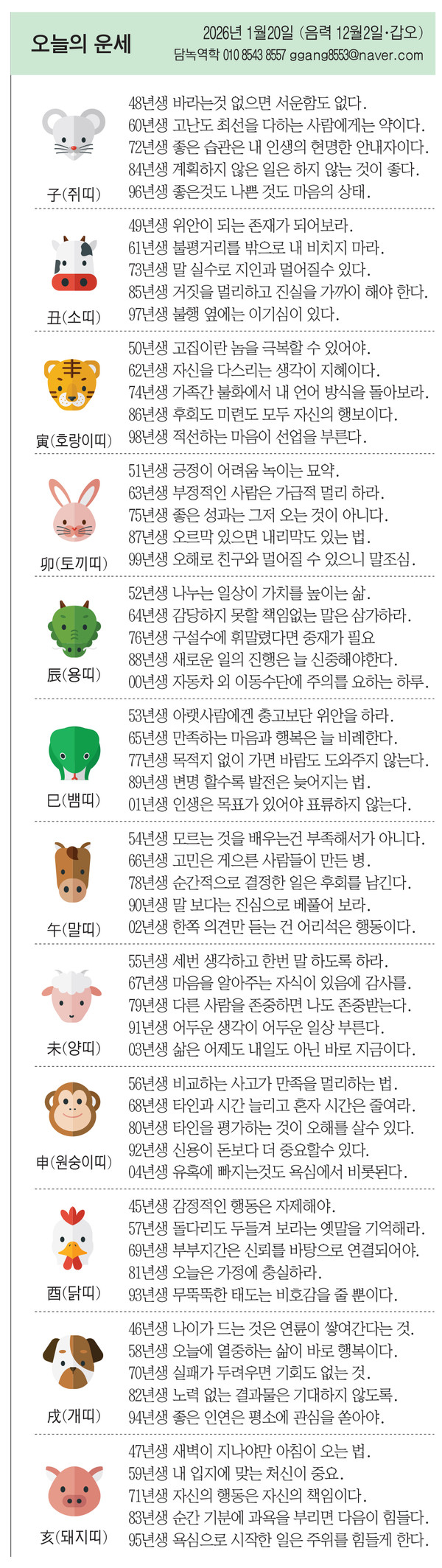 63년생 부정적인 사람은 가급적 멀리 하라.
