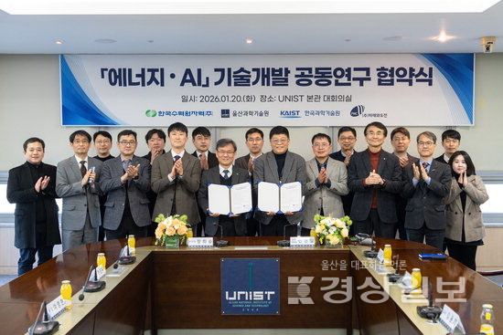 UNIST와 한국수력원자력은 20일 UNIST 대학본부에서 ‘에너지·AI 기술개발’ 공동연구 협약식을 열고, 에너지·원자력 분야 혁신기술 개발을 위한 산학협력에 나섰다.