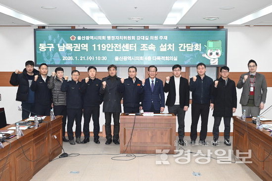 울산시의회 강대길 의원은 21일 시의회 4층 다목적 회의실에서 ‘동구 남목권역 119안전센터 조속 설치’ 간담회(사진)를 가졌다. 이날 간담회는 동구 남목 지역에 119안전센터가 없어, 화재 및 구조·구급 상황 발생 시 소방차, 구급차의 출동 지연 등 지역 주민의 소방 서비스 불편 문제를 신속히 해결하는 차원에서 마련됐다.